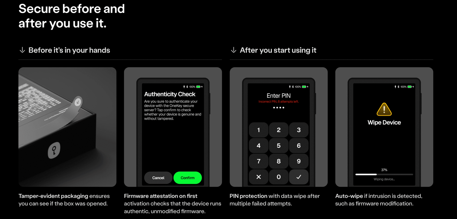 سیستم عامل متن باز، بستهبندی ضد دستکاری و ممیزیهای مستقل بلاکچین تضمین میکند که هر واحد بالاترین استانداردهای امنیتی جهانی را رعایت میکند. با OneKey Pro، ثروت دیجیتال شما فقط ذخیره نمیشود – بلکه توسط نوآوری محافظت میشود.